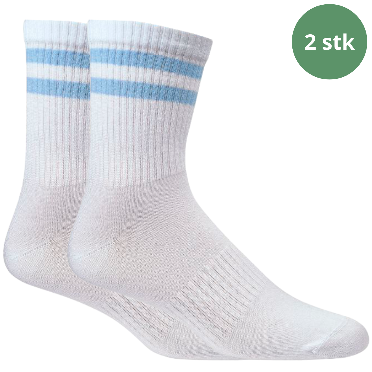 Vores lyseblå stribede tennissokker i bambus kombinerer blød komfort, høj åndbarhed og et moderne design. Ideelle til sport, fritid og hverdag – hvor dine fødder fortjener det bedste. Med 2 par i pakken får du sokker, der holder dine fødder friske og veltilpasse hele dagen.Fleksibel pasform og maksimal komfort