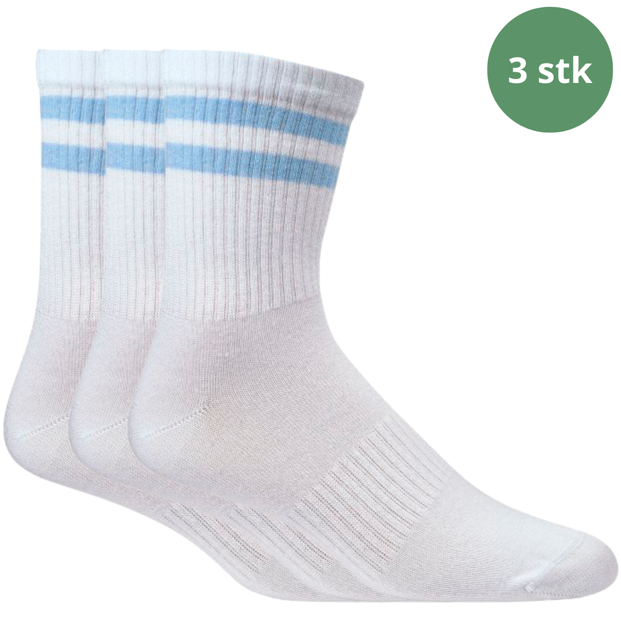 3 par lyseblå stribede bambus tennissokker – Komfort og åndbarhed