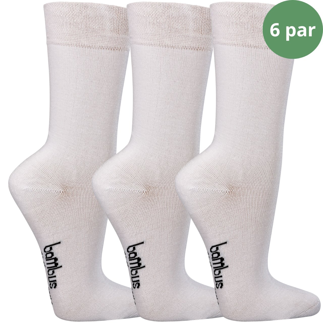 Bambus er ikke kun et miljøvenligt valg, men også et ideelt materiale til dine strømper. Bambus kræver langt mindre vand end bomuld og dyrkes uden pesticider. Desuden har bambus naturlige antibakterielle egenskaber, som hjælper med at holde dine strømper friske og lugtfri længere. Strømperne er også velegnede som diabetiker strømper, da de er uden stram elastik og lavet i et blødt og skånsomt materiale, som ikke irriterer huden. Bestil dine 6 par hvide bambusstrømper i dag, og mærk forskellen – både for dine fødder og for miljøet.🌿 Hvorfor vælge bambus?